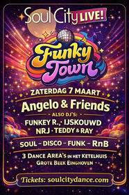 Dansen, grooving, wining, cocktails, luxe snacks van de live cooking areas in stijlvolle locaties, met soulvolle muziek van vooral toen, maar ook van nu. Voor iedereen van 23 jaar en (veel) ouder. Hits van EW&F, James Brown, Prince, Michael Jackson, Bob Marley, Aretha Franklin, Beyoncé, The Trammps, De La Soul, Will Smith, SaltNPepa, maar ook Bruno Mars, Justin Timberlake, Parliament Funkadelic, 50 Cent, Snoop Dogg en zo veel meer houden jou de hele avond op de dansvloer. Of je nu houdt van Dance Classics, RnB, (New) Soul, Motown, UK-Garage, 2-Step, Funk, (NU) Disco, Swingbeat, Hiphop, Reggae, Club Classics, Hardsoul of Funky Disco-House; Soul City, HipHop & RnB HooRay en Taking It Back brengen jou het beste van het beste, in meerdere areas in de prachtigste locaties van jouw stad. Met de beste DJ's en live muzikanten op het podium.